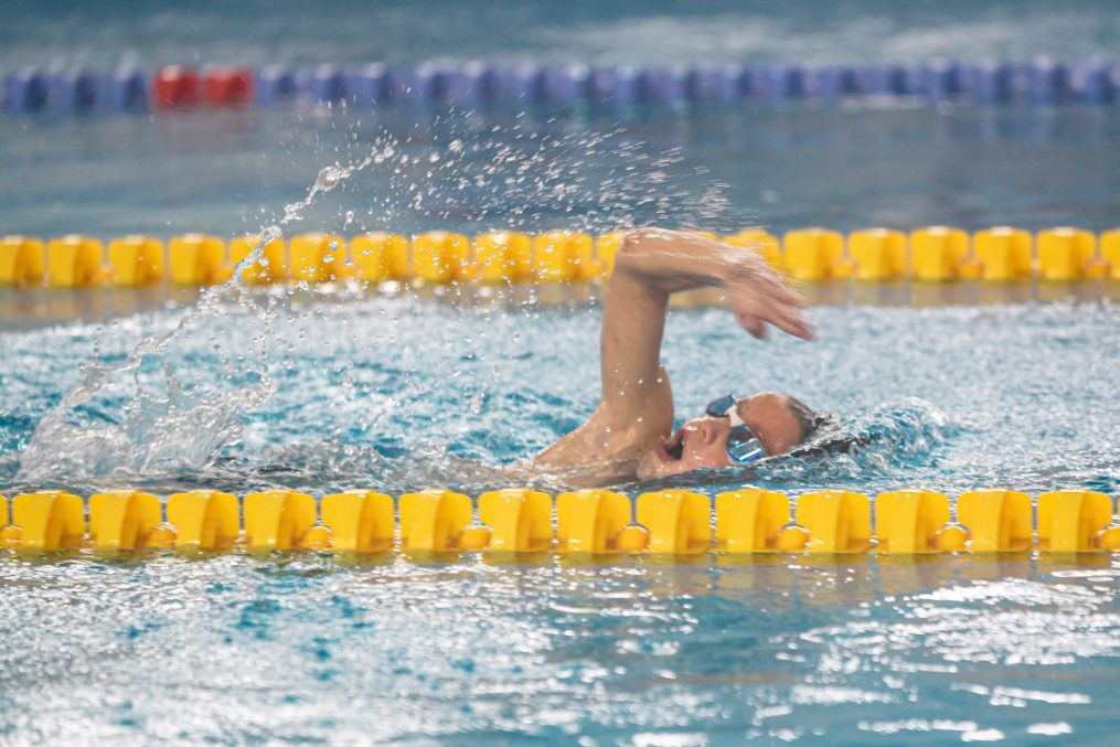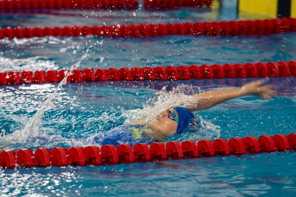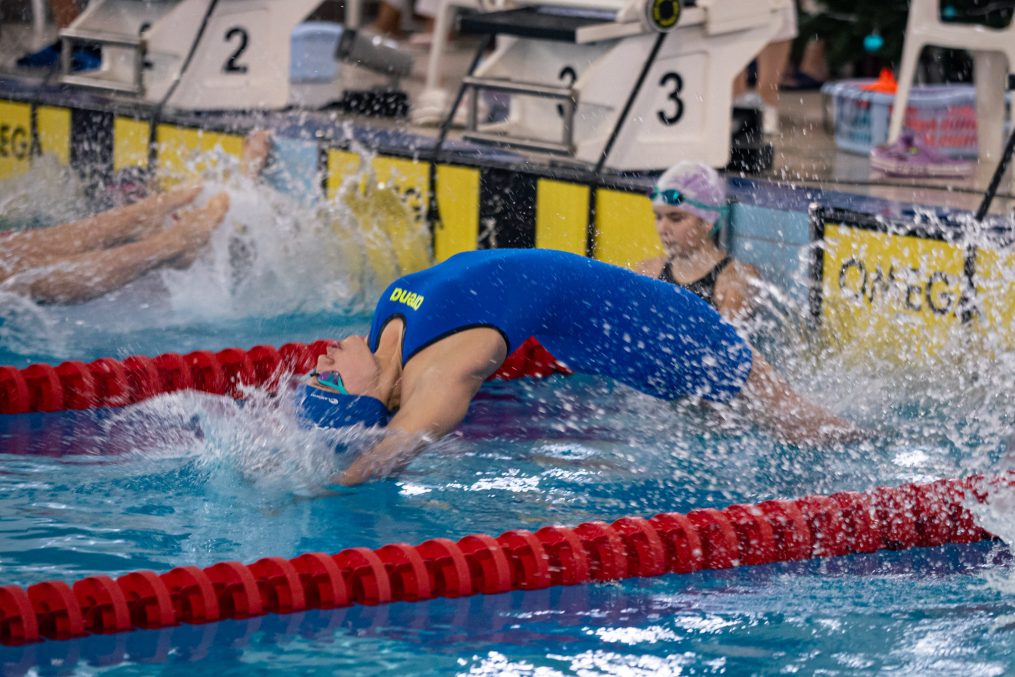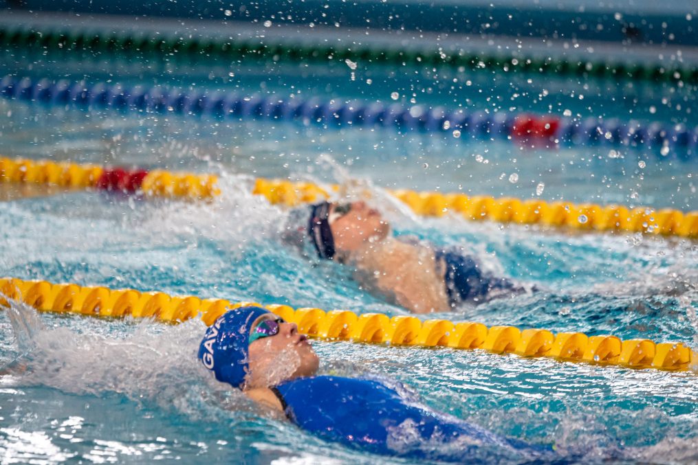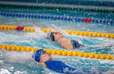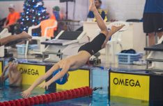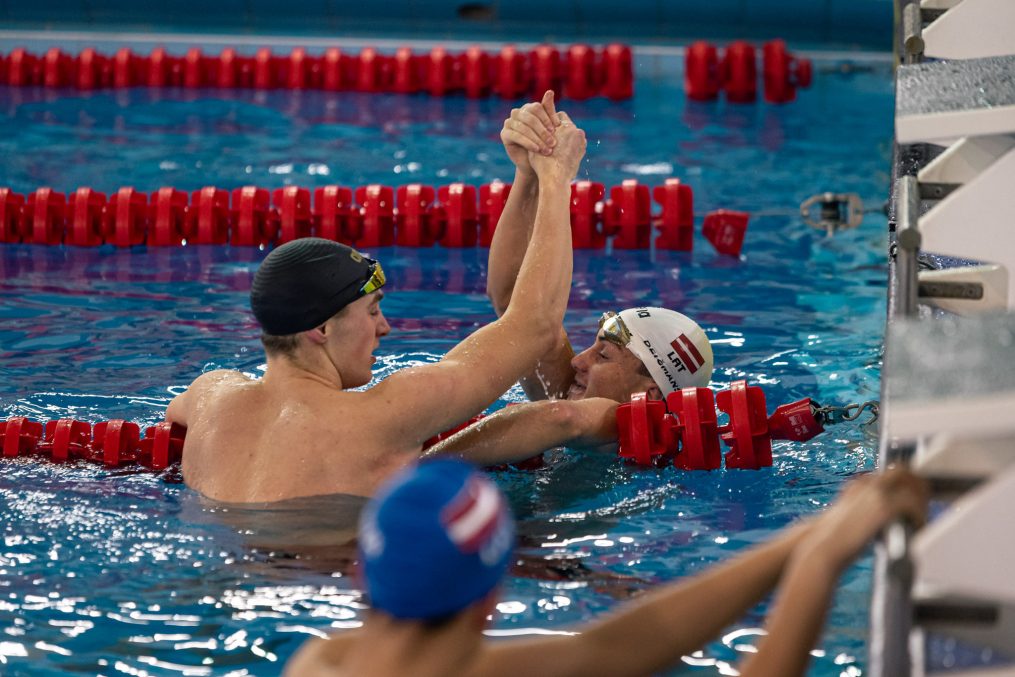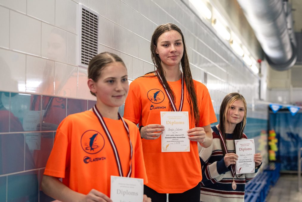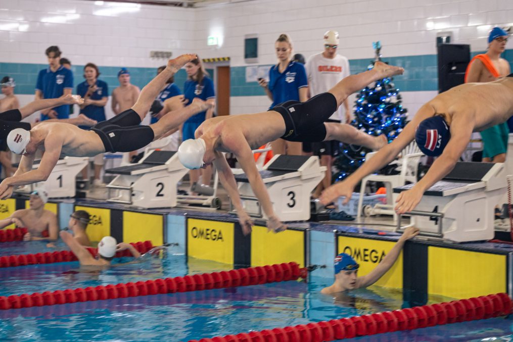 Latvijas Biozinātņu un tehnoloģiju universitātes 25 metru baseinā aizvadītas Jelgavas Specializētās peldēšanas skolas (JSPS) Ziemassvētku sacensības, kurās peldētāji cīnījās arī par Agnese Ozoliņas, Jāņa Mistera un Arsena Miskarova kausu. Foto: Sporta servisa centrs, Jelgavas Specializētā peldēšanas skola