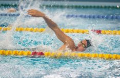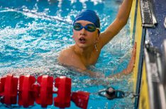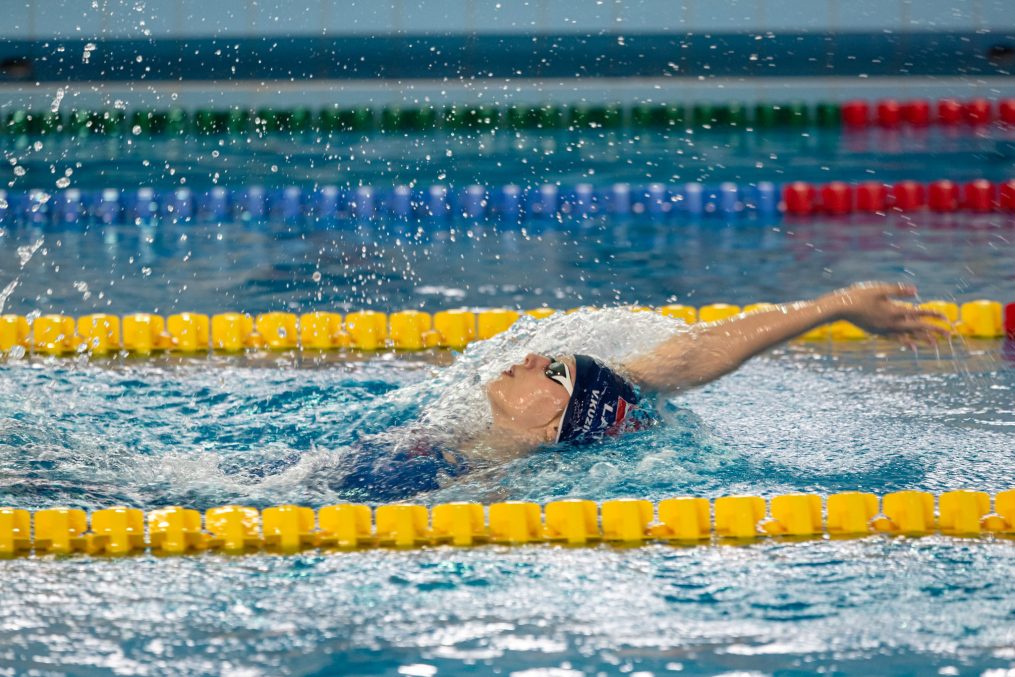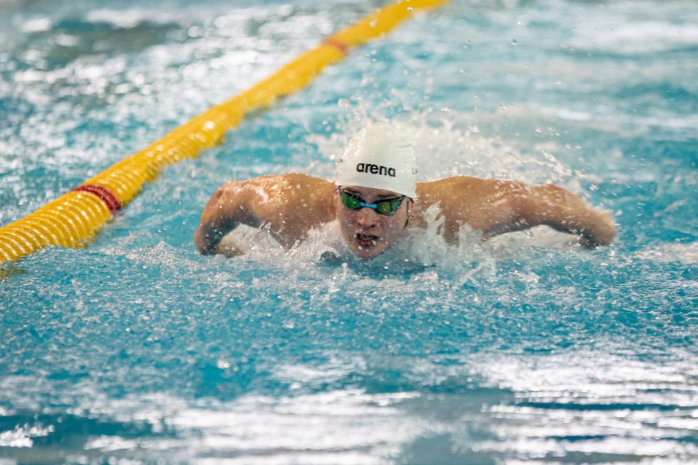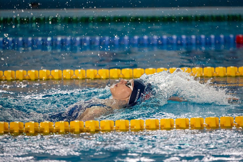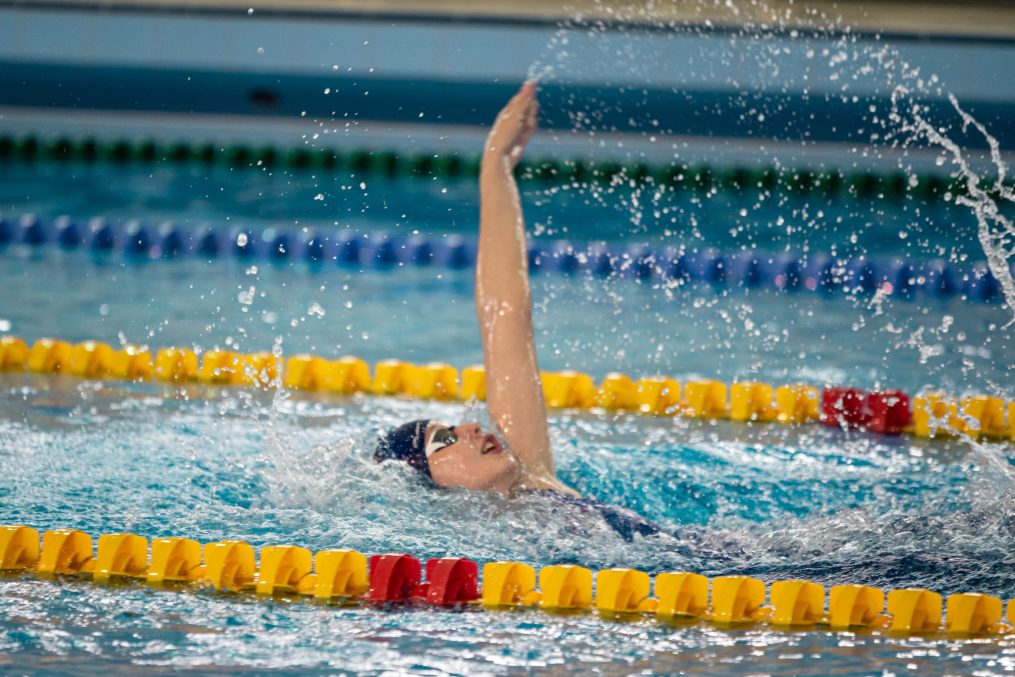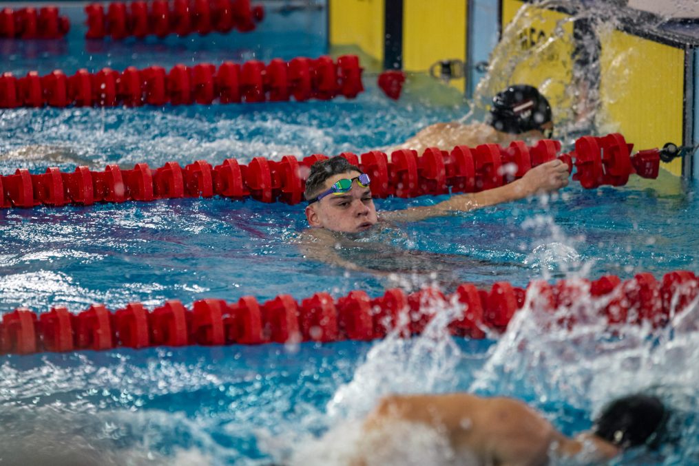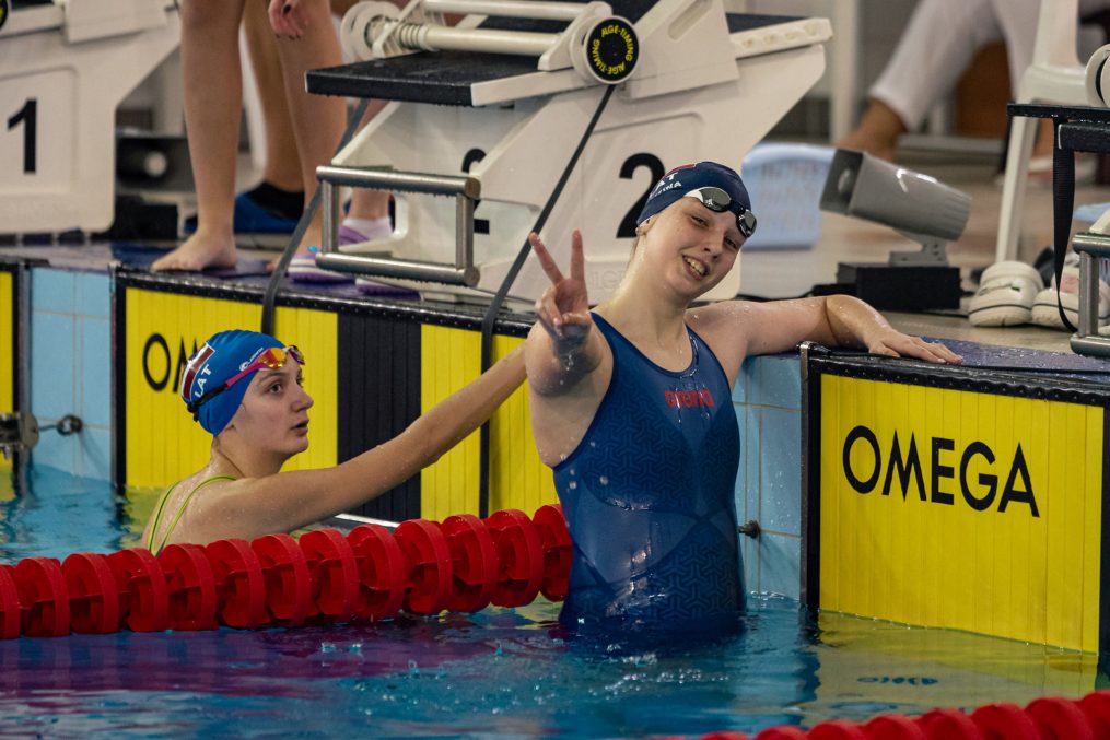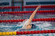 Latvijas Biozinātņu un tehnoloģiju universitātes 25 metru baseinā aizvadītas Jelgavas Specializētās peldēšanas skolas (JSPS) Ziemassvētku sacensības, kurās peldētāji cīnījās arī par Agnese Ozoliņas, Jāņa Mistera un Arsena Miskarova kausu. Foto: Sporta servisa centrs, Jelgavas Specializētā peldēšanas skola