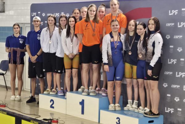 Jelgavā aizvadīts Latvijas čempionāts peldēšanā U-16 vecuma grupā. Jelgavas Specializētās peldēšanas skolas (JSPS) audzēkņi izcīnīja četras zelta, vienu sudraba un sešas bronzas medaļas, uzvarēja komandu kopvērtējumā un laboja divus Jelgavas rekordus. Foto: Jelgavas Specializētā peldēšanas skola