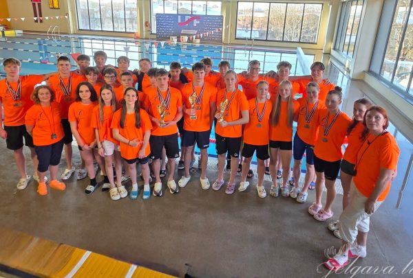 Liepājas Olimpiskā centra peldbaseinā aizvadīts Latvijas U-18 čempionāts peldēšanā. Jelgavas Specializētās peldēšanas skolas (JSPS) audzēkņi izcīnīja 19 medaļas, komandu kopvērtējumā pārliecinoši izcīnot 1. vietu. Foto: Jelgavas Specializētā peldēšanas skola