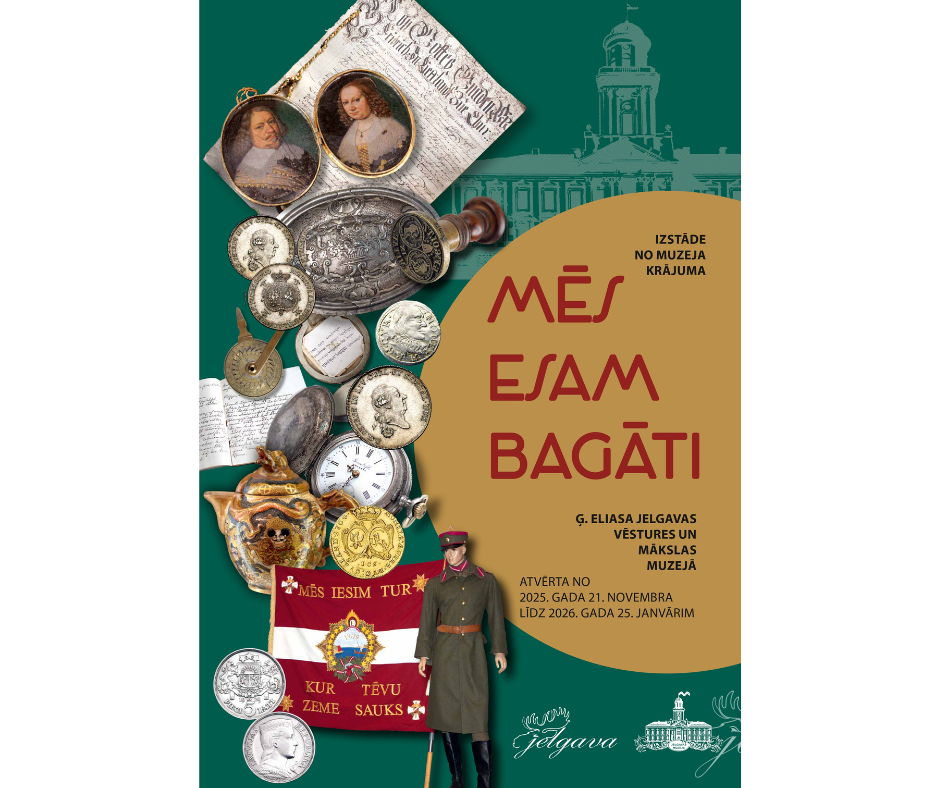 “Mēs esam bagāti” ir veltījums pilsētas 760 gadu un pirmās augstskolas Latvijā – Academia Petrina – 250 gadu jubilejai. Tās abas svinam šogad. Izstāde aptver muzeja krājuma papildināšanas desmitgadi no 2015. gada līdz 2025. gadam, atspoguļojot spilgtāko, interesantāko un varbūt arī mazliet noslēpumaino Jelgavas muzeja krājuma daļu. Muzejam tieši pēdējā radošā desmitgade krājuma papildināšanā bija apjomīga – vairāk nekā 15 000 artefaktu iekļauti krājumā un kopīgais krājuma priekšmetu skaits ir vairāk nekā 110 000 artefaktu.