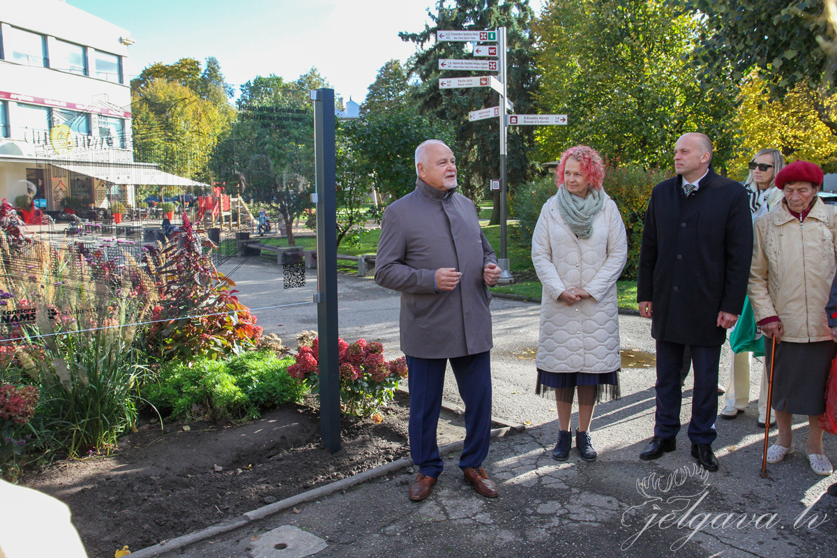 Uz plāksnes atrodas QR kods, kas aizved uz informatīvu materiālu par Jelgavas Latviešu biedrības nama vēsturi.