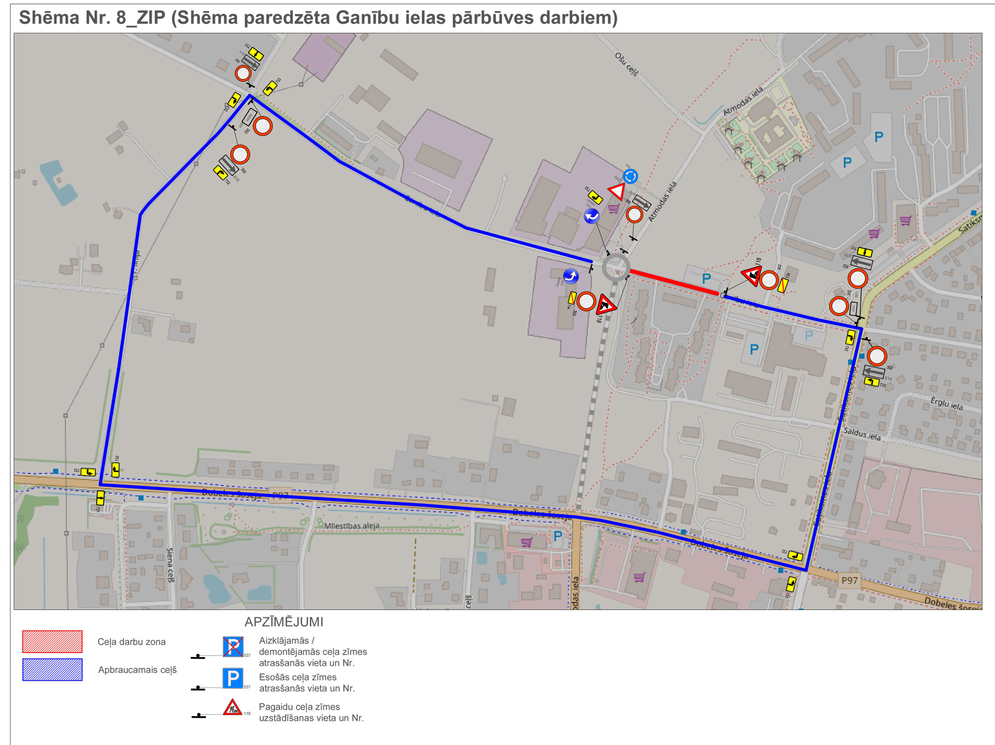 Iedzīvotājiem, kas dzīvo vai pārvietojas ar autotransportu šajā teritorijā, lūgums ņemt vērā  aktuālās satiksmes organizācijas izmaiņas, sekojot līdzi izvietotajām ceļa zīmēm.