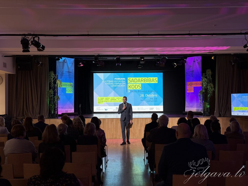 Šodien Jelgavas Tehnoloģiju vidusskolā norisinājās forums “Sadarbības kods: Skola. Bizness. Kopiena”, kas pulcēja vairāk nekā 60 dalībniekus no izglītības iestādēm, uzņēmumiem un pašvaldībām. Foruma mērķis – stiprināt sadarbību starp izglītības un uzņēmējdarbības sektoriem, veicinot kopīgu izpratni par darba tirgus vajadzībām un mūsdienīgas mācību vides attīstību.
