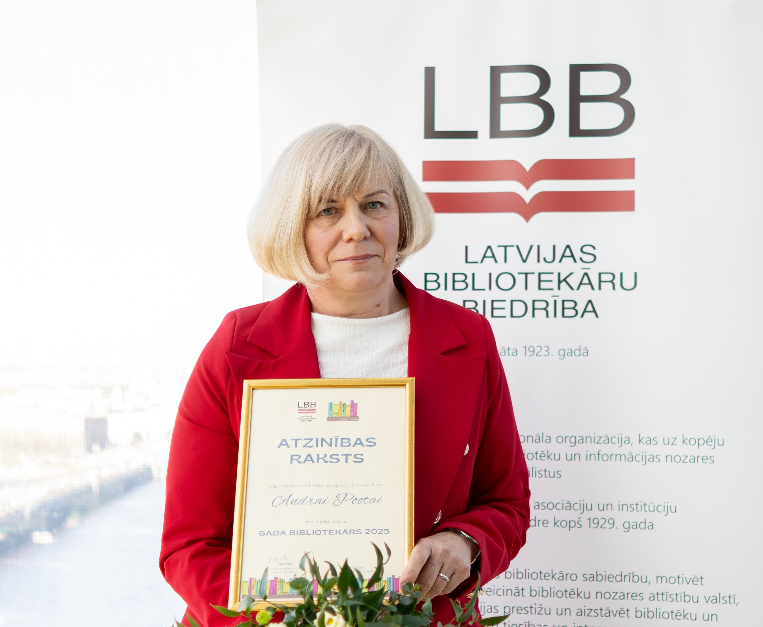 Latvijas Nacionālajā bibliotēkā notikušajā Latvijas Bibliotekāru biedrības (LBB) 16. kongresā “Bibliotēkas nākotnei”, izceļot profesionālo veikumu un devumu bibliotēku nozarē, pasniegta Latvijas Bibliotekāru biedrības balva “Gada bibliotekārs 2025”. Šo balvu saņēma Jelgavas Pilsētas bibliotēkas novadpētniecības speciāliste Andra Poota.