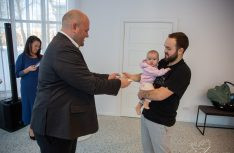 31. janvārī Jelgavas valstspilsētas un novada Dzimtsarakstu nodaļas telpās notika tradicionālais jaundzimušo sveikšanas pasākums “Mūs gaida, mēs nākam”, uz kuru bija aicināti 103 mazie jelgavnieki, kuri dzimuši 2025. gada septembrī, oktobrī, novembrī un decembrī un viņu ģimenes. Viņu vidū arī divi dvīņu pāri.