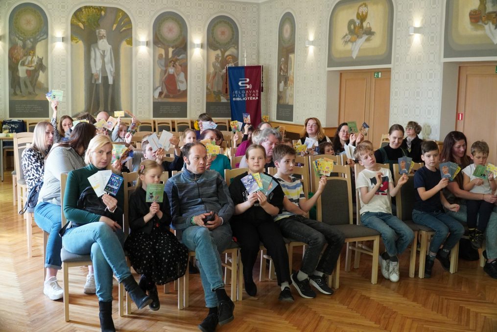 Svētdien, 12. aprīlī, Jelgavas Pilsētas bibliotēkas K.Barona zālē godināti lasītāji, kuri 2025. gadā piedalījās lasīšanas veicināšanas programmā “Bērnu, jauniešu un vecāku žūrija 2025” (BJVŽ), visa gada garumā lasot, vērtējot un iepazīstot kolekcijā iekļautās grāmatas. Uz pasākumu tika aicināti aktīvākie lasītāji no bērnu un jauniešu bibliotēkas “Zinītis”, Pārlielupes bibliotēkas un Miezītes bibliotēkas.