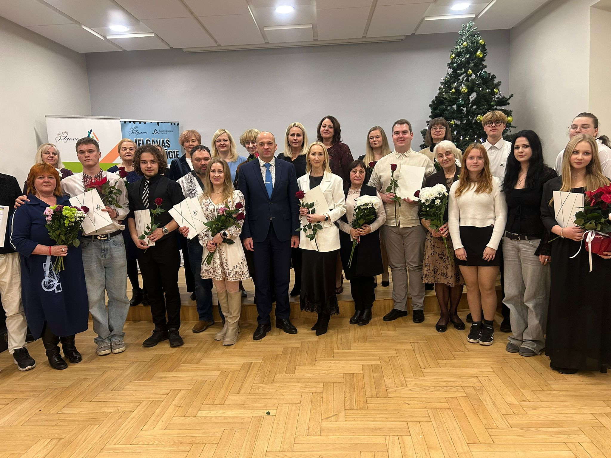 Jelgavas pašvaldība un Sabiedriskais centrs pateicās arī kustības “Jelgavas brīvprātīgie” jauniešiem par darbu 2025. gadā, kuri kopumā šogad nostrādājuši 600 brīvprātīgā darba stundas. Jaunieši palīdz organizēt, vadīt un nodrošināt gan pilsētas, gan Sabiedriskā centra pasākumus, koncertus, sporta sacensības, ir vadītas aktivitātes bērniem un ģimenēm, kā arī palīdzēts Jelgavas biedrību aktivitātēs. Šie jaukie jaunieši iespējams pat neapzinās, kādu lielisku un nozīmīgu pienesumu tie devuši savai pilsētai. Pateicības rakstu saņēma Vanesa Vecuma-Veco, Nora Vītola, Kristaps Dreijers, Madara Laima Lejniece un Eila Helēna Kleva.