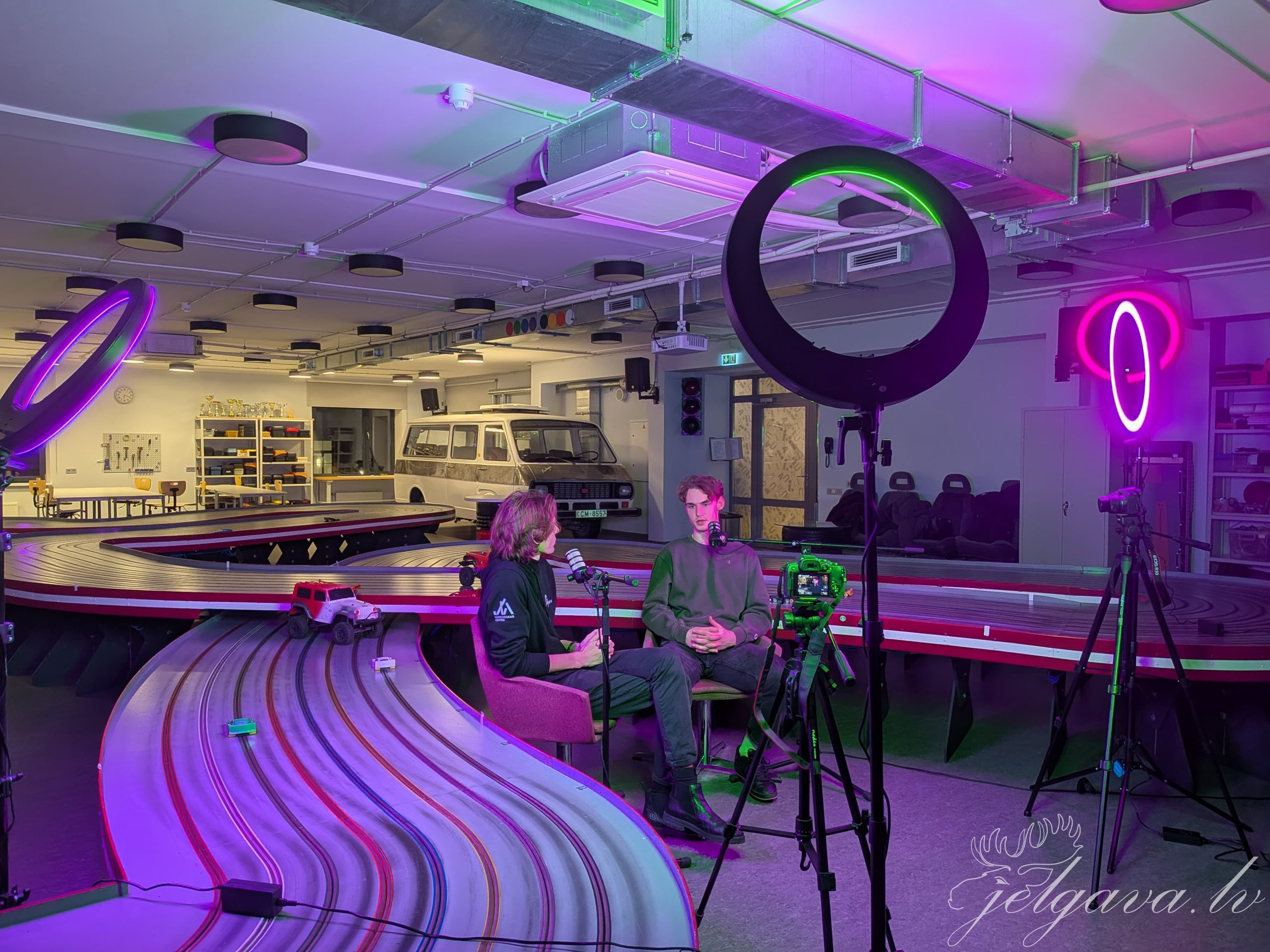 Darbnīcas, kurās tika apgūtas nepieciešamās zināšanas podkāstu ieraksta veikšanai, norisinājās Jelgavas jauniešu centrā “Pakāpiens”, taču jaunieši nolēma, ka pašai ierakstīšanai vajadzīgas telpas, kas tematiski precīzāk atbildīs podkāsta konceptam “Domu garāža”. Tādēļ jaunieši podkāstu filmēšanu un ierakstīšanu veica Jelgavas jaunrades nama “Junda” trases un koka automodeļu telpās.
