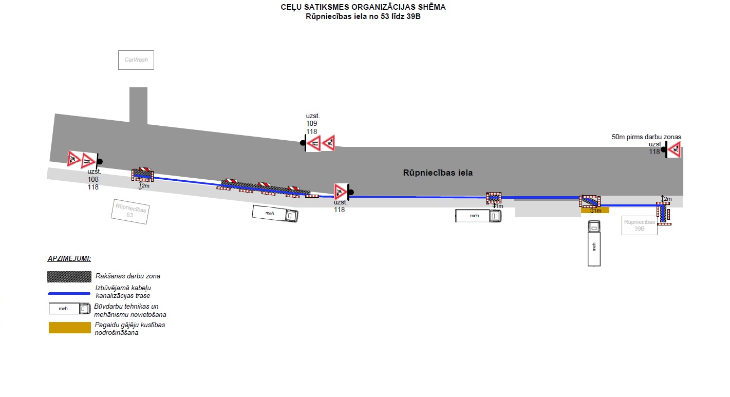 Darbu izpildītājs, atbildīgais par satiksmes organizāciju: SIA “IxCom”, kontakttālrunis 29979925.