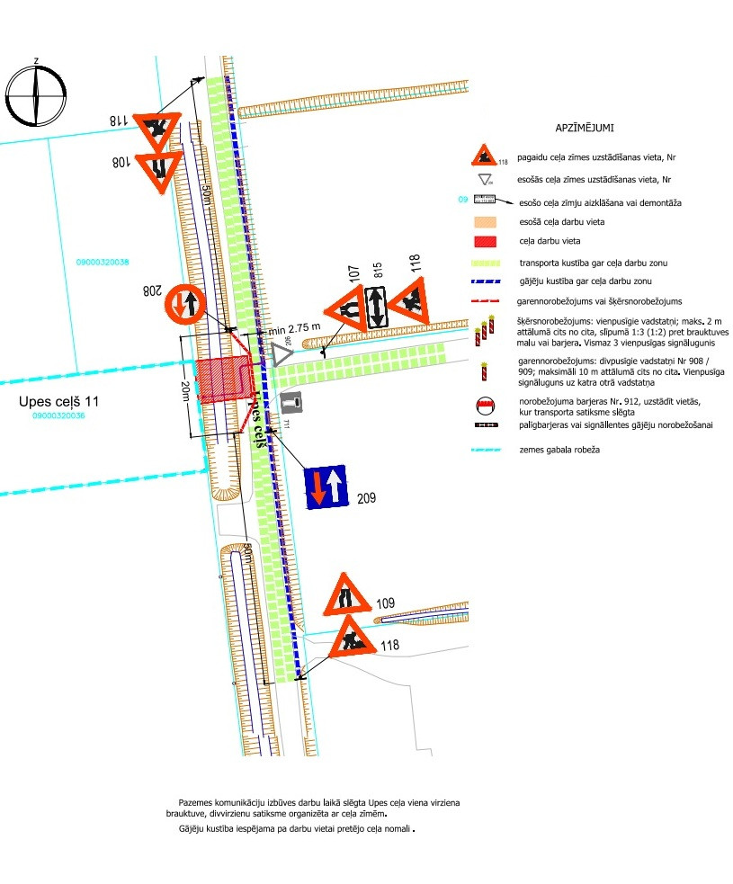 Pazemes komunikāciju izbūves darbu laikā slēgta Upes ceļa viena virziena brauktuve, divvirzienu satiksme organizēta ar ceļa zīmēm. Gājēju kustība iespējama pa darba vietai pretējo ceļa nomali. Darbu uzsākšanas un veikšanas laiks atkarīgs no tehnoloģiskā procesa. Darbus pēc AS “Sadales Tīkls” DR pasūtījuma veic SIA “Elektromontāžas serviss”.
