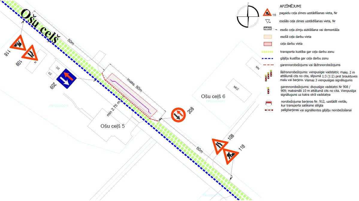 Ierobežota satiksmes un gājēju kustība Ošu ceļā