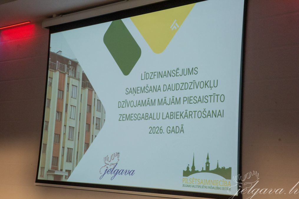 Aizvadīta tikšanās ar pilsētas daudzdzīvokļu namu apsaimniekotājiem un dzīvokļu īpašnieku kontaktpersonām, kas Zemgales reģiona Kompetenču attīstības centrā pulcēja vairāk nekā 80 interesentu. Dalībniekiem prezentētas izmaiņas daudzdzīvokļu namu pagalmu labiekārtošanas programmā 2026. gadā, kā arī iedzīvotāji uzdeva savus jautājumus gan par projektu iesniegšanu, gan citiem apsaimniekošanas jautājumiem. Jelgavnieki interesējās par iespēju piesaistīt pašvaldības līdzfinansējumu videonovērošanas ierīkošanai, vai Jelgavā plānots izbūvēt pazemes jeb iedziļinātos atkritumu konteinerus, vai pašvaldība var nodrošināt būvinženiera konsultāciju pirms iecerētā projekta izstrādes un citiem jautājumiem.