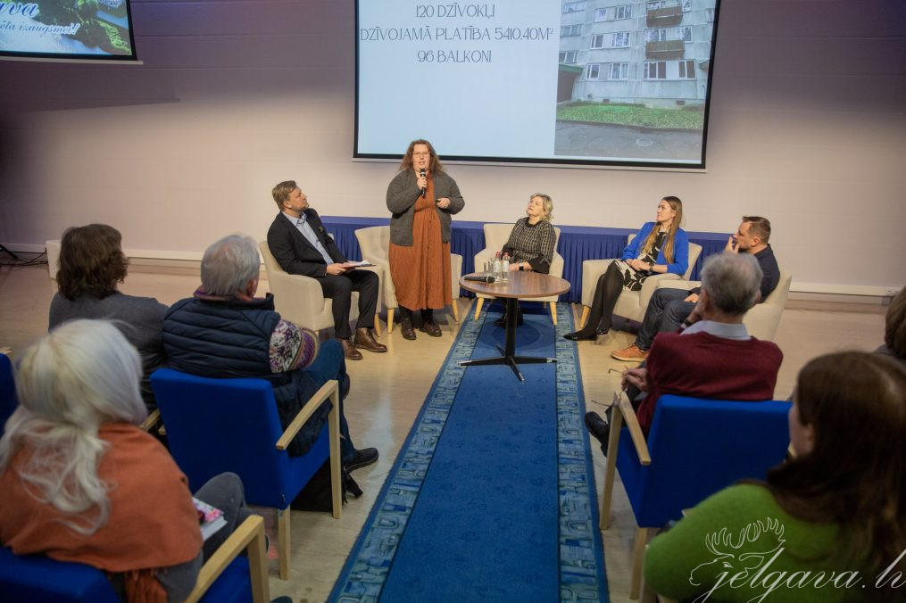 Šajā reizē notika arī paneļdiskusija, kurā Pērnavas ielas 18 mājas vecākā Inga Daukšte iepazīstināja ar viņu mājas renovācijas projektu, ieguvumiem un iedzīvotāju attieksmi, Olga Usača no Māras ielas 8 dalījās pieredzē par pagalmu labiekārtošanas projektu. Savukārt SIA “Zemgales EKO” valdes locekle Kristīne Stukina māju pārstāvjiem vērsa uzmanību uz pareizu atkritumu šķirošanu, jo ikdienā joprojām dalīto atkritumu konteineros ir 30 līdz 40 procentu piemaisījums, kas nekvalificējas šķirotajiem atkritumiem. “Pats galvenais ieguvums no pareizas šķirošanas – tā jūs variet samazināt izdevumus par atkritumu apsaimniekošanu,” tā K.Stukina. Bet SIA “Jelgavas komunālie pakalpojumi” valdes loceklis Andrejs Eihvalds paneļdiskusijā dalījās ar labajiem piemēriem, kā slēgtā atkritumu novietnē pareizi šķirojot atkritumus, var atkritumu izmaksas samazināt pat par 35%. Iedzīvotāji norādīja, ka uzņēmumam būtu jāiegādājas modernāka tehnika lielgabarīta atkritumu savākšanai, ar lielākām manevrēšanas spējām.
