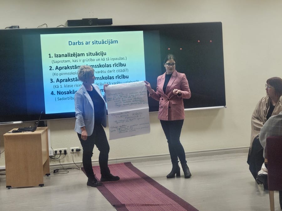 Darbsemināra mērķis bija stiprināt sadarbību starp pirmsskolas un sākumskolas pedagogiem, veicinot bērniem vienmērīgu, pārdomātu un emocionāli drošu pāreju uz skolu.