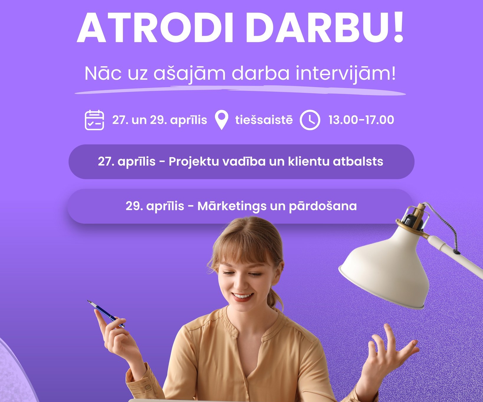 1. aprīli – projektu vadība un klientu atbalsts: https://visasiespejas.typeform.com/to/PjxJLxx5