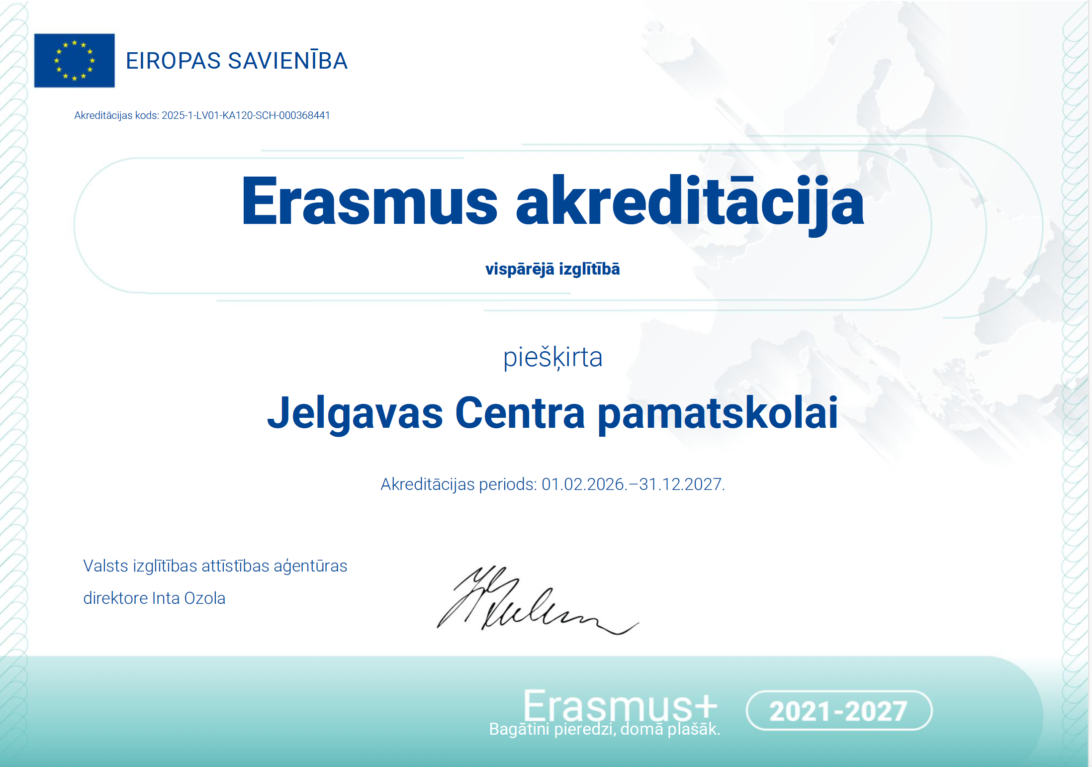 Katru gadu Valsts izglītības attīstības aģentūra piešķir Erasmus+ programmas akreditācijas, un šogad tādu ieguvusi arī Jelgavas Centra pamatskola.