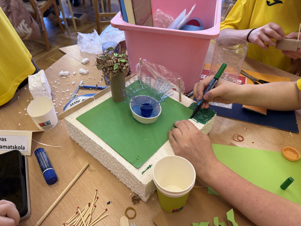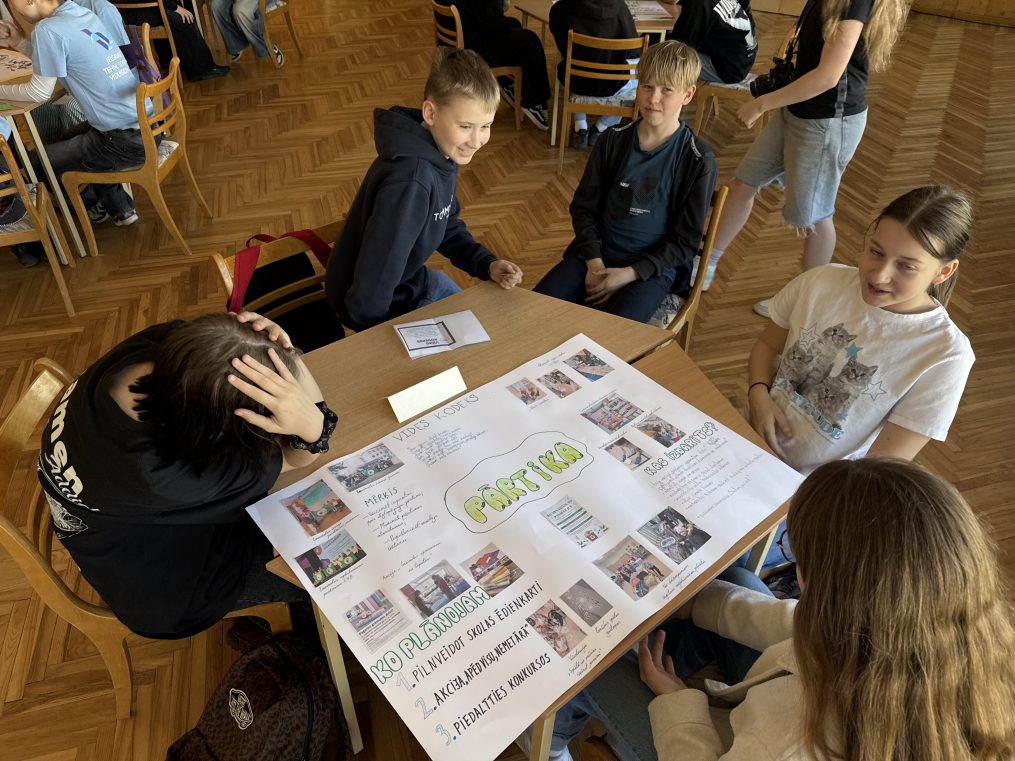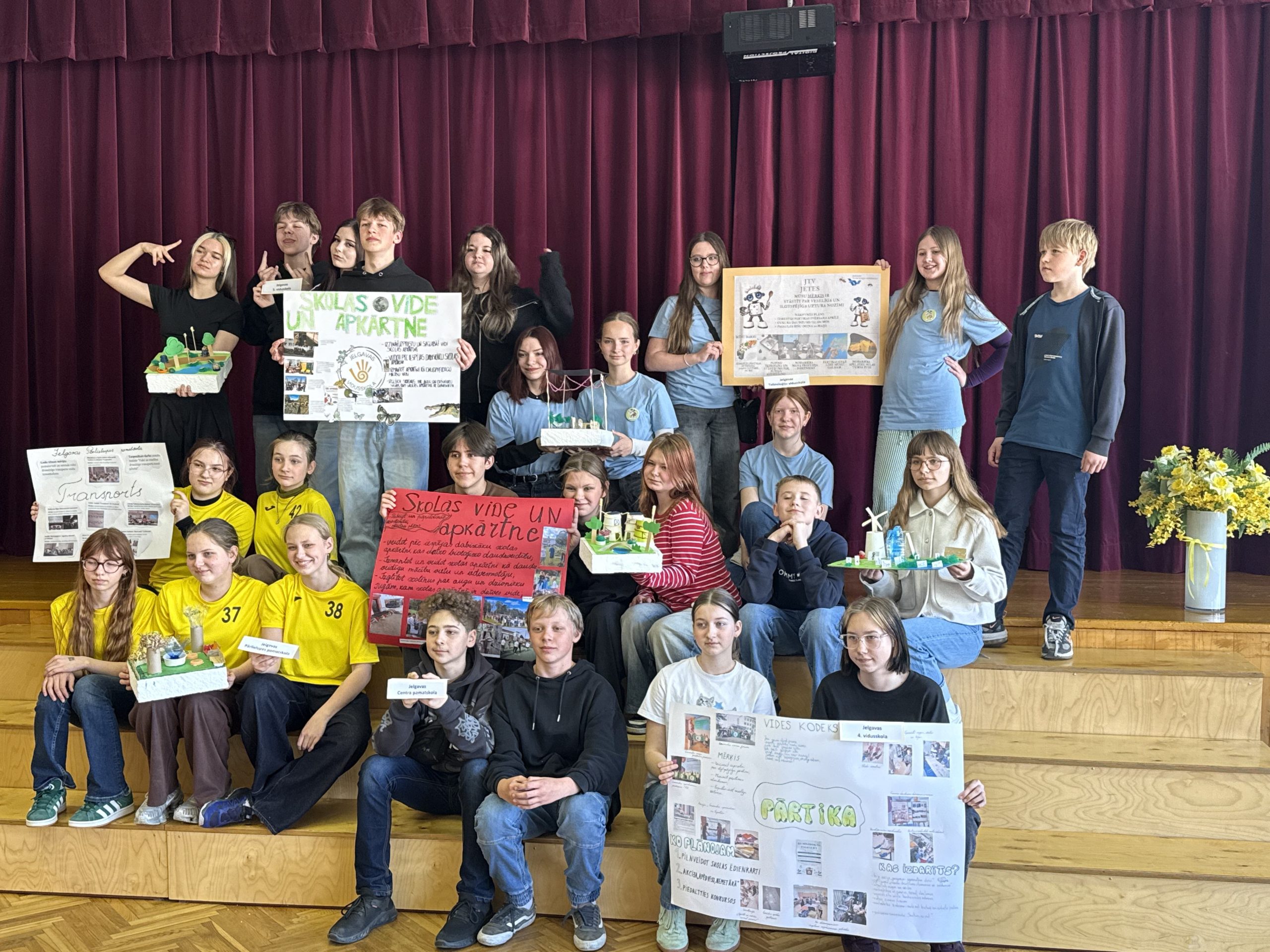 Tāpat dalībnieku zināšanas tika pārbaudītas viktorīnā, uzdevumos par ekoskolu simboliem un krustvārdu mīklās. Noslēgumā komandas radoši strādāja pie idejām “zaļākai” Jelgavai, piedāvājot risinājumus pilsētvides uzlabošanai – no atjaunojamās enerģijas izmantošanas līdz labiekārtotām atpūtas zonām, dzīvniekiem draudzīgām teritorijām un plašākām apzaļumošanas iespējām.