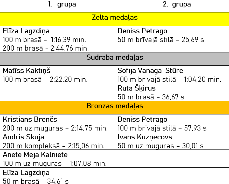 Jelgavas Specializētās peldēšanas skolas audzēkņu labākie rezultāti
