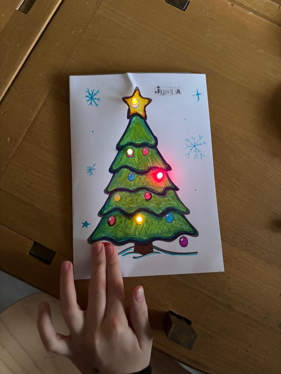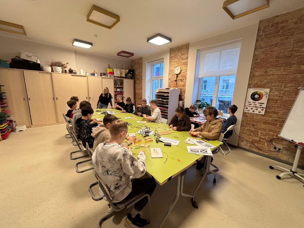 Tematiskā nodarbība “Kartiņa ar gaismas diodēm (elektriskā ķēde)” (ID2025/2/STEM/24) tika īstenota piecās nodarbībās, kurās piedalījās 138 izglītojamie. Šajās nodarbībās skolēni iepazinās ar dažādu elektrisko ķēžu veidiem un to galvenajām atšķirībām, kā arī praktiski darbojās, veidojot elektriskās ķēdes.
