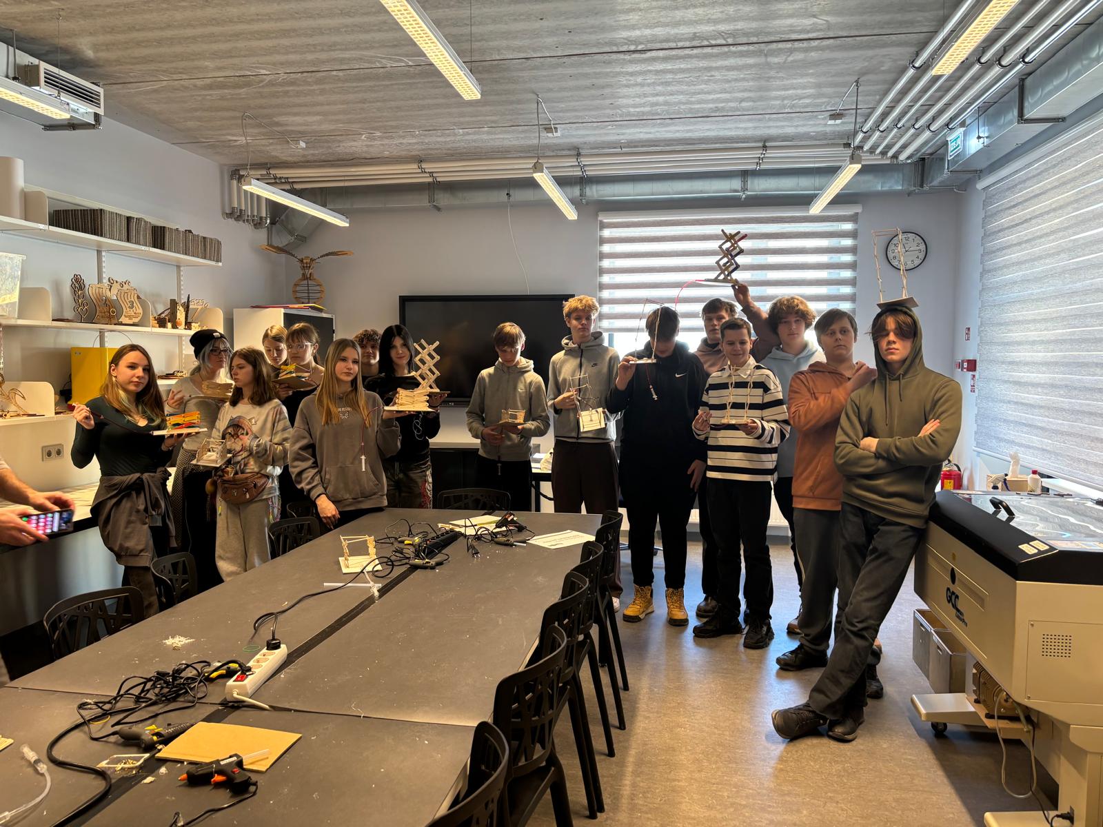 4. februārī RīgasValdorfskolas 16 izglītojamie no 9. klases un 27. februārī 40 Ozolnieku vidusskolas 7. klašu izglītojamie izgatavoja hidraulisko pacēlāju. Nodarbībās jaunieši praktiski iepazinās ar hidraulikas darbības principiem, izgatavojot funkcionējošu pacēlāja modeli un izprotot spiediena un šķidruma kustības nozīmi tehniskajās sistēmās.