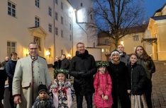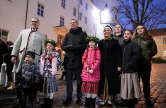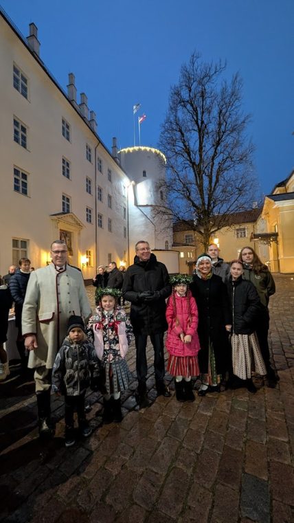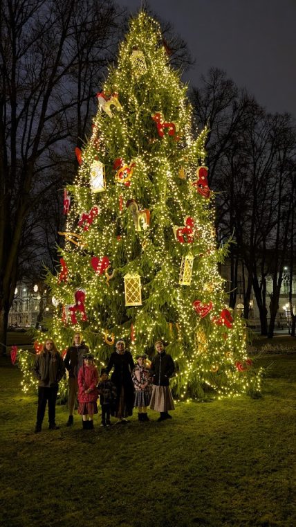Kūlupu ģimene no Jelgavas kopā ar Valsts prezidentu un citām Latvijas daudzbērnu ģimenēm iededz Rīgas pils egli
