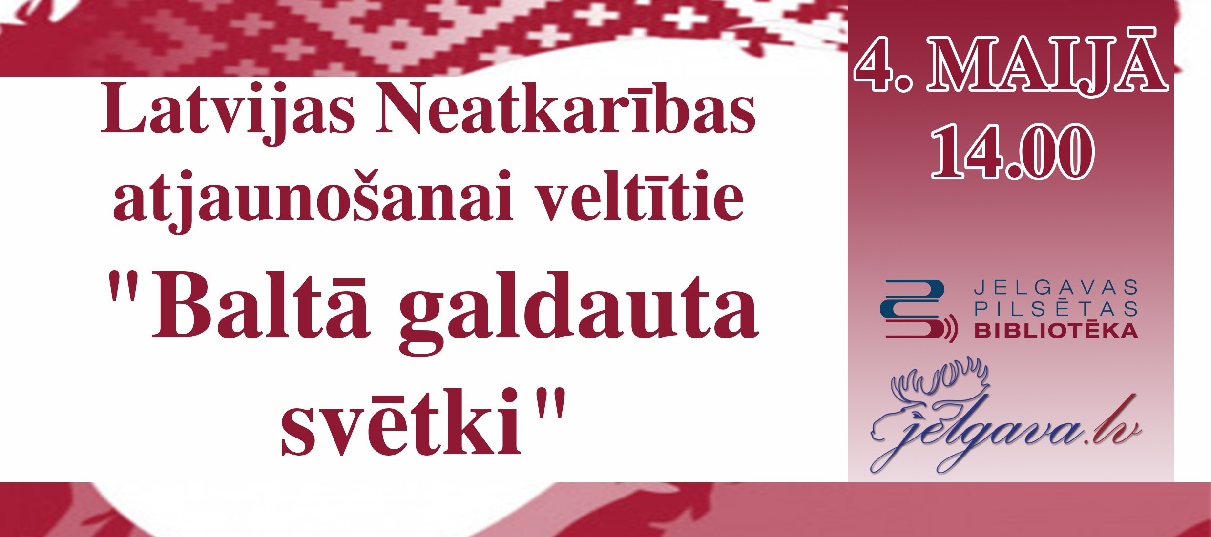 4. maijā Brīvības svētku ietvaros Jelgavas pilsētas bibliotēkas un mākslas studijas Mansards pagalmā plkst. 14.00, jau tradicionāli, svinēsim Baltā galdauta svētkus. Laipni aicināti kaimiņi, draugi un pilsētas viesi!
