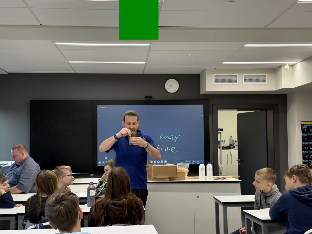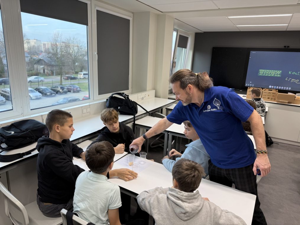 Jelgavas Tehnoloģiju vidusskolas 9. klases fizikas stundā skolēni padziļināti pētīja dažādu koksnes veidu blīvumu, praktiski darbojās ar divkomponentu līmi, iepazina kompozītmateriālu veidus un ar spēka sviru testēja pašu salīmēto koka sagatavju izturību. Neformālās sarunās un praktiskajā procesā guva izpratni par materiālu ķīmiskajām reakcijām un to nozīmi tehnikas un inženierzinātņu jomā. Savukārt 7. klases nodarbībā uzmanības centrā bija koks kā kompozītmateriāls — skolēni pētīja, kā materiāla stiprība ietekmē tā īpašības, apguva pamatterminus ķīmijā, pārrunāja drošības prasības darbā ar vielām un veica eksperimentus ar lapkoku un skujkoku skaidām. Nodarbības laikā skolēni diskutēja arī par koksnes vietu ikdienas dzīvē.