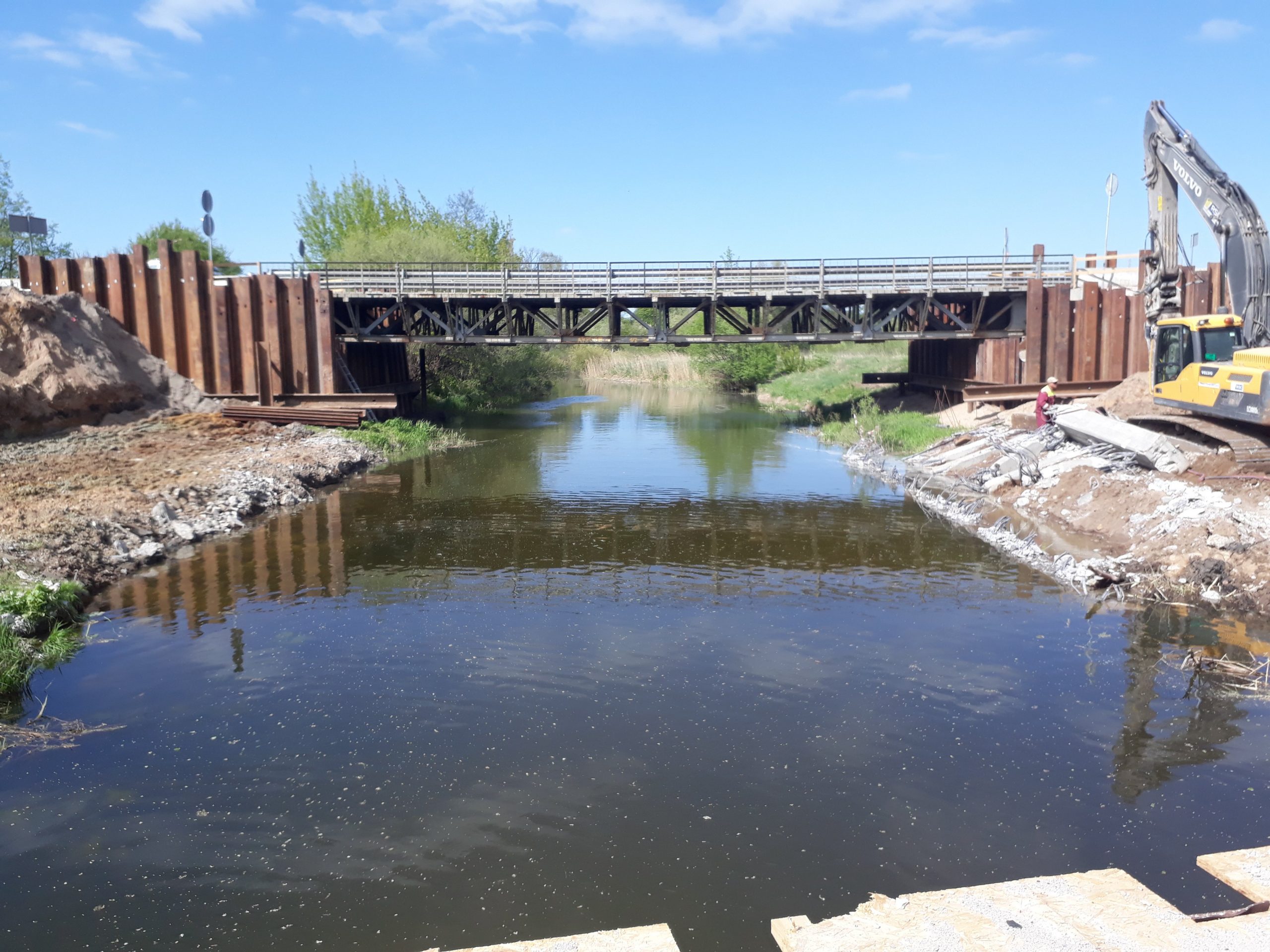 Turpinoties būvdarbiem objektā „Tilta pārbūve pār Platones upi Miera ielā, Jelgavā” ir demontēts 1979.gadā celtais tilts, transporta un gājēju kustība notiek pa izbūvēto pagaidu tiltu.