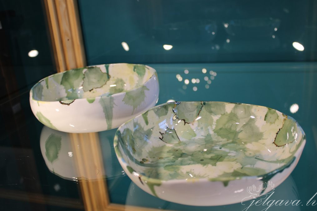 “Izstādē aplūkojamie porcelāna trauki atšķiras ar to, ka tie pārsvarā veidoti uz podnieka virpas, kas ir pretstatā klasiskajai porcelāna izstrādes metodei – atlieti ģipša formās, tādā veidā gūstot unikalitāti katrā izstrādājumā. Krūzes, šķīvji, bļodas un vāzes – tie ir galvenie autores lietišķās mākslas veidotie priekšmeti. Izstādē apskatāmie darbi ir veidoti porcelānā ar dažādu dekoratīvo stilistiku,” stāsta Ieva Jurka.