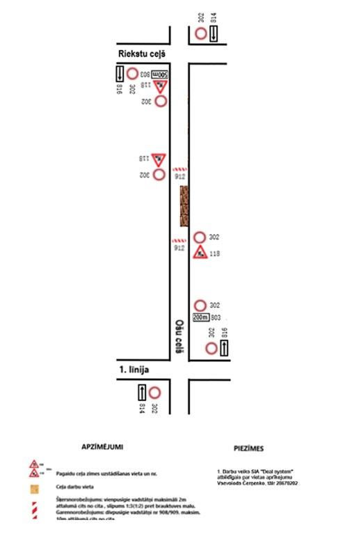 Darbu izpildītājs, atbildīgais par satiksmes organizāciju ir SIA “Deal systems”. Darbu pasūtītājs: SIA “Connecto Latvija”.