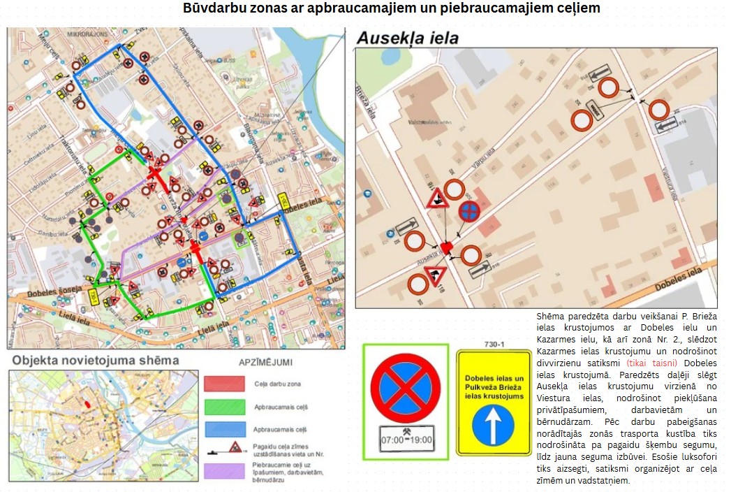 Pulkveža Brieža un Kazarmes ielas krustojums joprojām paliek slēgts un Dobeles ielas krustojumā tiks saglabāta divvirzienu kustība – transportlīdzekļi drīkst pārvietoties tikai taisni.