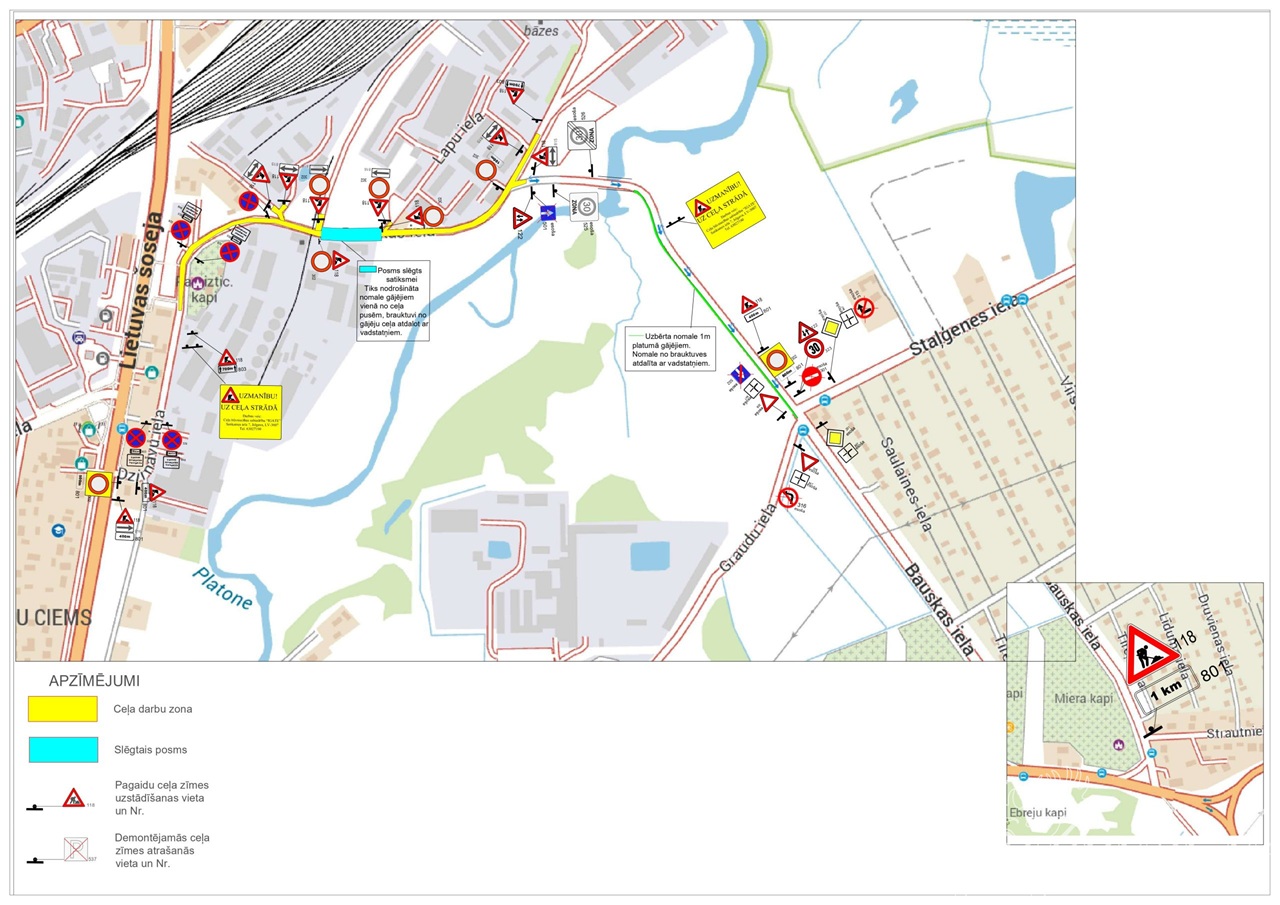 Iedzīvotāji un satiksmes dalībnieki aicināti ievērot saskaņoto satiksmes organizācijas shēmu un uzstādītās ceļa zīmes.