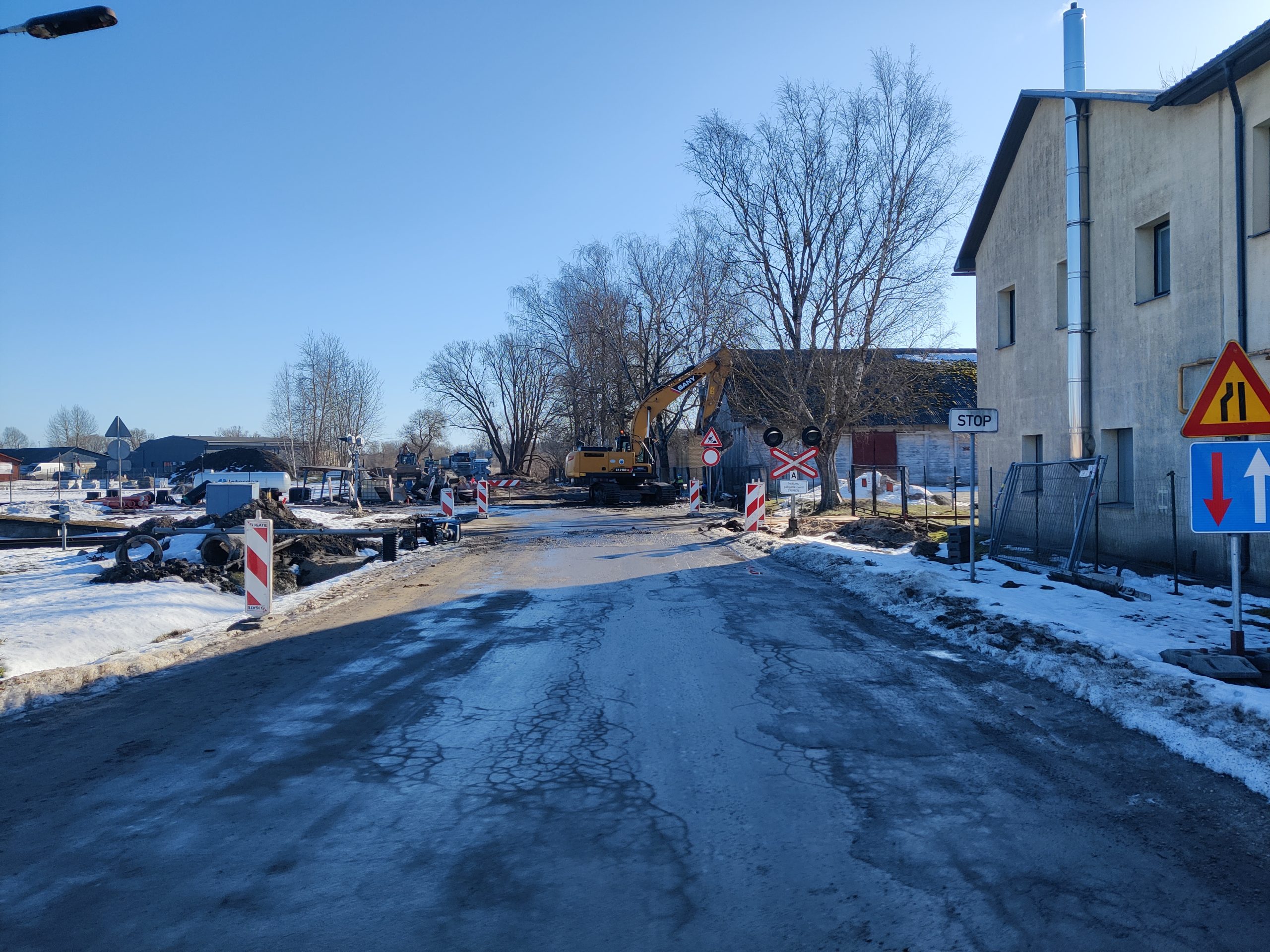 Būvuzņēmējs turpina pagaidu ūdensvada izbūvi, betona tekņu un caurteku demontāžu, kā arī drenāžas, lietus kanalizācijas un sadzīves kanalizācijas spiedvada izbūvi. Vienlaikus tiks turpināti arī ceļa pārbūves darbi.