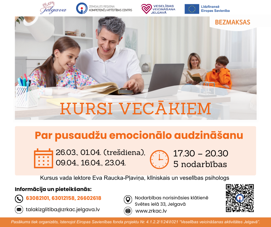 Zemgales reģiona Kompetenču attīstības centrs (ZRKAC) aicina vecākus piedalīties bezmaksas kursos par pusaudžu emocionālo audzināšanu un veselību. Nodarbības norisināsies klātienē ZRKAC Svētes ielā 33 un tās vadīs klīniskā psiholoģe Eva Raucka-Pļaviņa.
