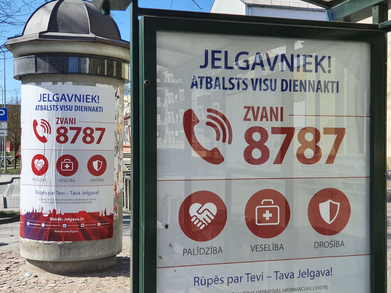 Lai sniegtu informāciju plašākam jelgavnieku lokam, pilsētvidē izvietoti informatīvi plakāti par Pašvaldības operatīvās informācijas centra diennakts tālruni 8787.  Pilsētas iedzīvotāji aicināti vērsties pa norādīto tālruni jebkurā situācijā, katrs gadījums tiks izvērtēts un meklēti iespējamie risinājumi.