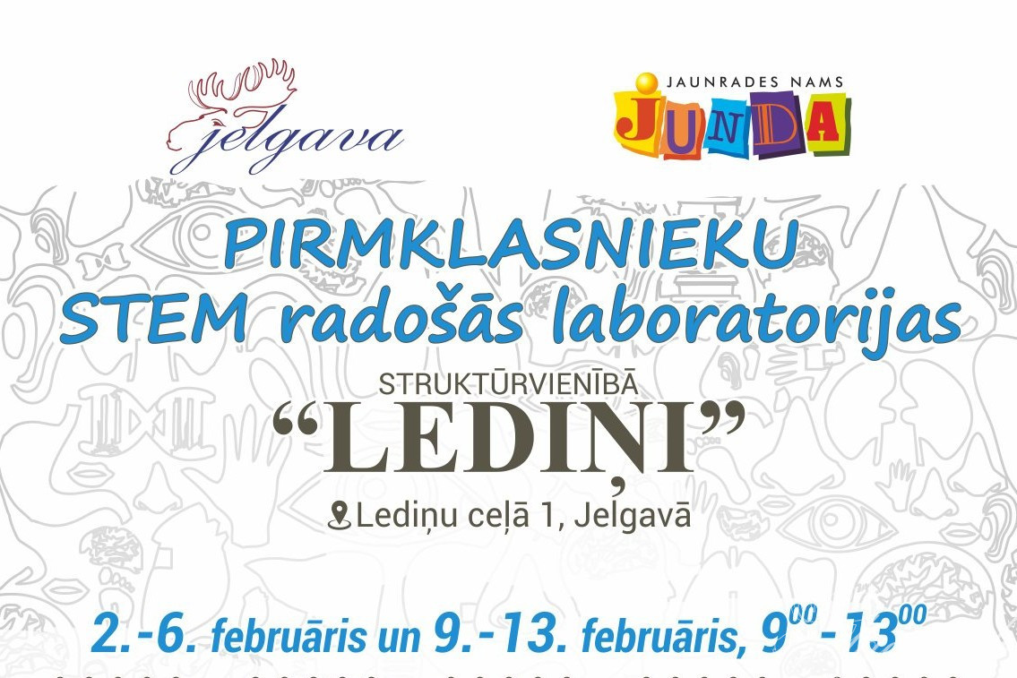 Jaunrades nams “Junda” februārī, kad pirmklasniekiem būs papildu brīvlaiks, aicina 1. klašu skolēnus piedalīties izglītojošās un radošās STEM laboratorijās, kas norisināsies “Lediņos” Lediņu ceļā 1. Nodarbības notiks no 2. līdz 6. februārim un no 9. līdz 13. februārim katru darba dienu no pulksten 9 līdz 13, piedāvājot bērniem iespēju iepazīt cilvēka ķermeni caur praktiskiem pētniecības eksperimentiem, kustību aktivitātēm un radošiem uzdevumiem. Pieteikšanās STEM laboratorijām sāksies 26. janvārī pulksten 10, aizpildot elektronisko pieteikuma formu.