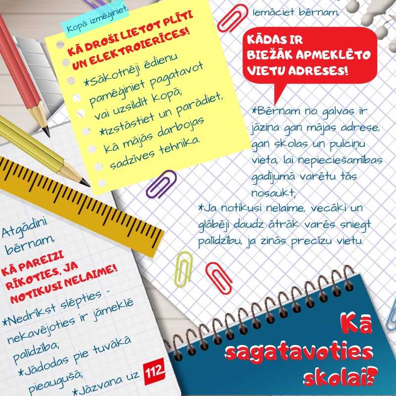 Mācību gads būs piepildīts gan ar nodarbībām skolā un interešu izglītības pulciņos, gan pasākumiem draugu lokā, tādēļ vecākiem būtu jāiemāca bērnus regulāri pavēstīt, kurp viņi nolēmuši doties un ar ko kopā, un cik ilgu laiku būs prom. Aiciniet bērnus iegaumēt biežāk apmeklēto vietu adreses, lai nepieciešamības gadījumā varētu nosaukt savu atrašanās vietu.