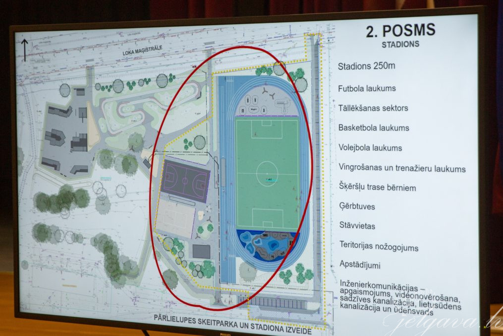 SIA “We Build parks”, kas izstrādā skeitparka un Pārlielupes pamatskolas stadiona būvniecības ieceres dokumentāciju, pārstāvji iedzīvotājiem prezentēja projektu fināla versiju, kurā iekļauti jelgavnieku ierosinājumi, kas uzklausīti pirmajā projekta prezentācijā pērn oktobrī. Tā piemēram, projektētāji, uzklausot iedzīvotāju rosināto, ir vienu basketbola laukumu aizstājuši ar pludmales volejbola laukumu, kā arī blakus laukumam tiks ierīkota āra duša. Tāpat gan skeitparka, gan stadiona projektā ir paredzēts izveidot segtas īslaicīgas atpūtas vietas–nojumes, kur vasaras laikā patverties no tiešiem saules stariem. Šajā reizē klātesošie tika iepazīstināti ar trenažieru laukumā paredzēto aprīkojumu – tie būšot augstas produktivitātes trenažieri, kādus izmanto labi aprīkotās sporta zālēs. Projekta autori norādīja, ka tie būs līdzīgi trenažieriem, kādus jelgavnieki pirms laika vasarā varēja mēnesi izmēģināt pagalmā pie Loka maģistrāles 25. Tāpat projektētāji ņēmuši vērā ieteikumu izveidot aktīvās atpūtas zonu mazākiem bērniem – paredzēts izbūvēt šķēršļu trasi ar sešiem elementiem un reljefainu gumijas segumu. Projekta autori uzsver, ka Jelgavas skeitparks būs viens no top 5 Latvijā, ja ne pat Baltijā, kas būs piemērots gan maziem bērniem ar līdzsvara velosipēdu, gan starptautiska mēroga sacensībām.