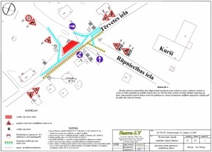 Tērvetes ielā pirms Rūpniecības ielas būs slēgta kreisā braukšanas josla virzienā uz centru, satiksme virzienā no centra uz Svēti organizēta pa pretējā virziena joslu. No Tērvetes ielas virzienā uz Dobeli aizliegts nogriezties pa kreisi, apbraukšanai izmantot blakus esošo ielu pieslēgumus, kravas transportam iespējams apgriezties rotācijas aplī pie gaisa tilta (Lietuvas šoseja).