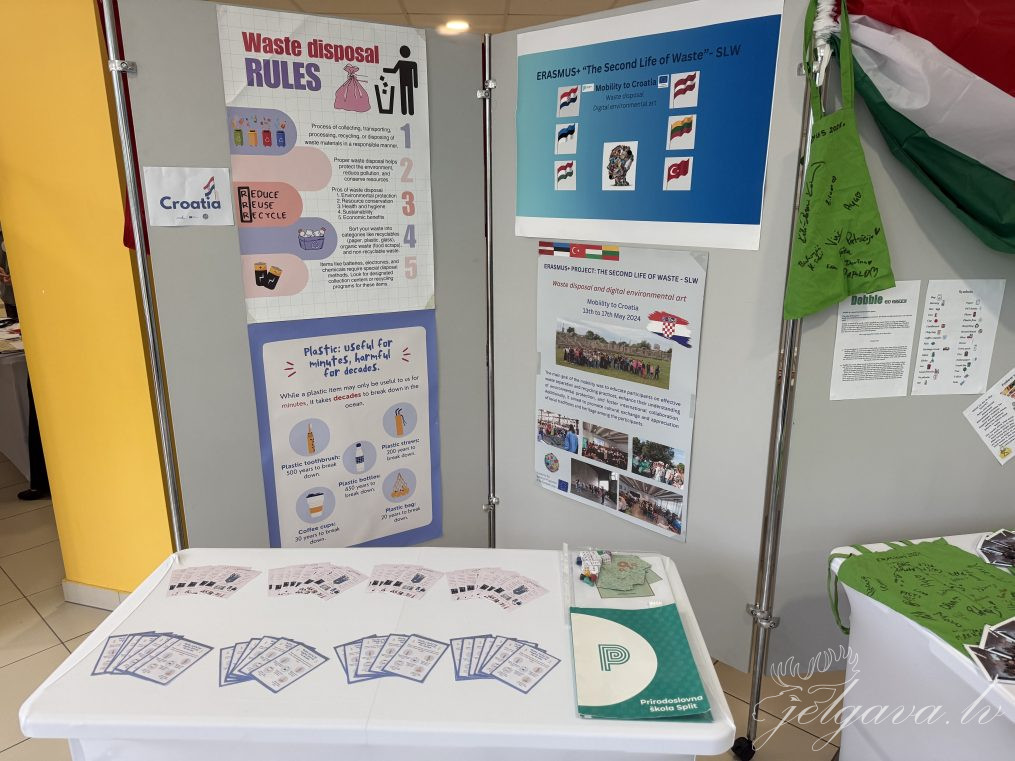 Šonedēļ Jelgavas 4. vidusskolā norisinājās Erasmus+ projekta “The Second Life of Waste” mobilitāte, kurā piedalījās partneri no Ungārijas, Horvātijas, Turcijas, Igaunijas un Lietuvas. Projekts tuvojas noslēgumam, un šajā posmā dalībnieki pievērsās vienai no aktuālākajām vides tēmām – plastmasas atkritumu apsaimniekošanai.