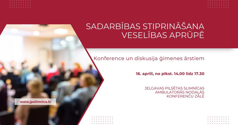 Jelgavas pilsētas slimnīca 16. aprīlī no pulksten 14 līdz 17.30 ģimenes ārstus aicina piedalīties konferencē “Sadarbības stiprināšana veselības aprūpē”.