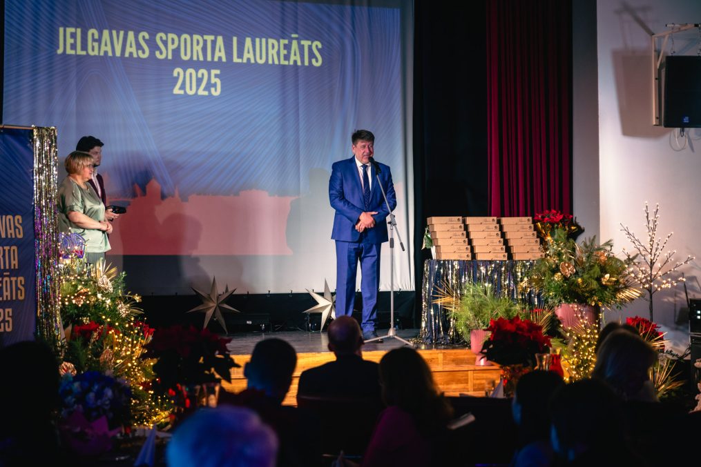 “Jelgavas sportistiem 2025. gadā panākumi bijuši gan Latvijas, gan Baltijas, gan Eiropas, gan pasaules mērogā. Piemēram, šogad Latvijas čempiona titulu izcīnīja 112 Jelgavas sportisti, Baltijas čempiona titulu – četri, Eiropas čempiona titulu – deviņi, pasaules čempiona titulu – divi, kā arī izcīnītas medaļas un vietas labāko sešiniekā, arī, piemēram, Eiropas Jaunatnes olimpiskajā festivālā šogad bija līdz šim lielākā Jelgavas pārstāvniecība,” atklājot pasākumu un uzrunājot klātesošos, norādīja Sporta servisa centra direktors Juris Kaminskis.