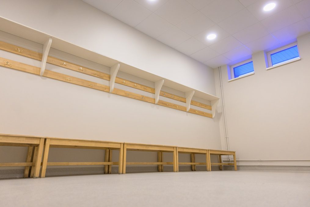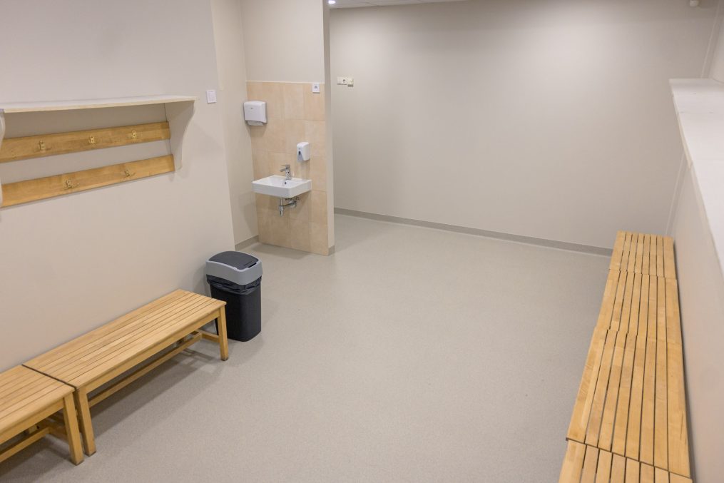 Jelgavas sporta hallē Mātera ielā 44A izremontētas divas ģērbtuves – pa jaunu izbūvētas ģērbtuvju sienas, izveidotas un norobežotas dušu kabīnes, nomainīta santehnika, apgaismojums, ieklāts jauns grīdas segums, nomainītas durvis.