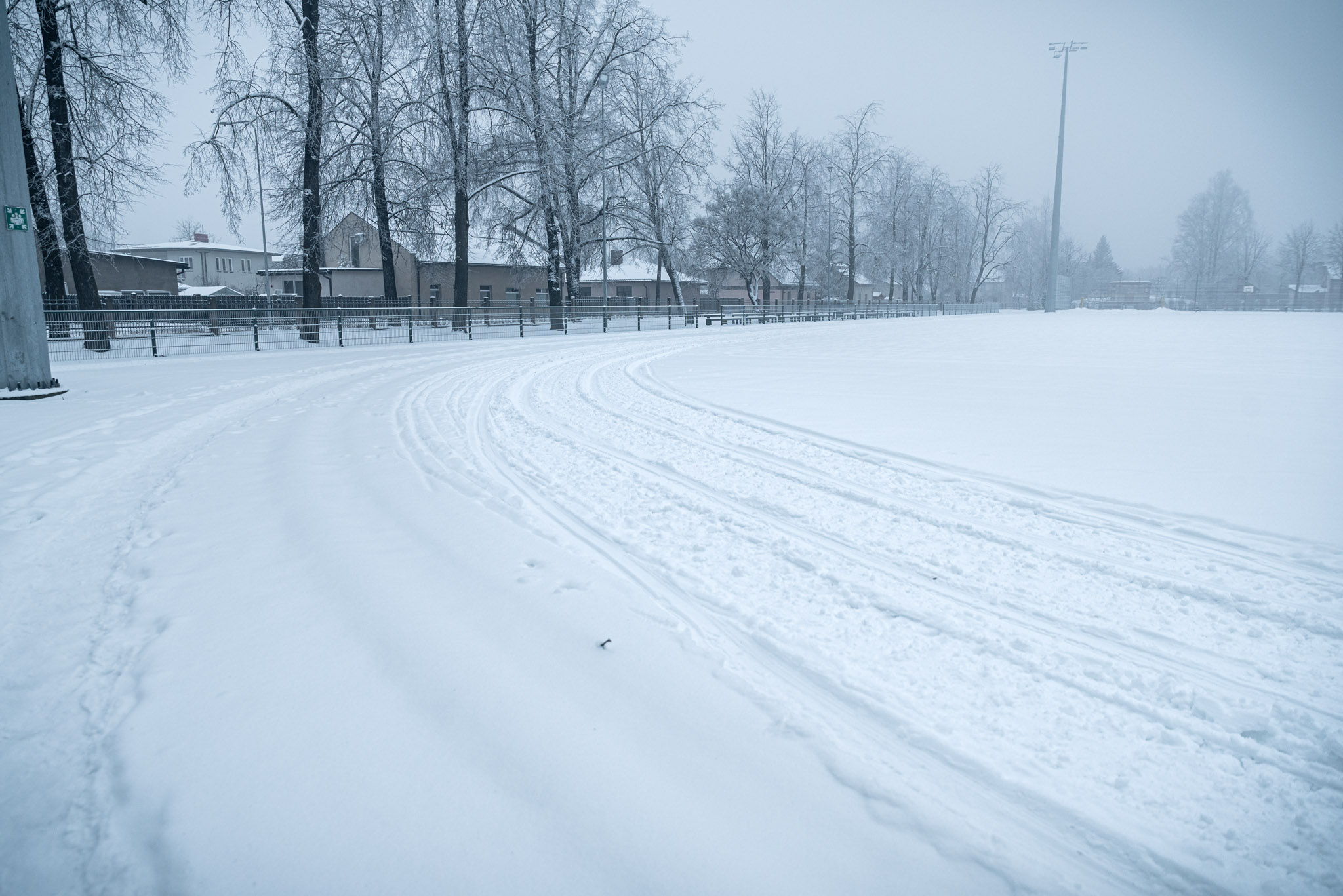 Jelgavas sporta halles stadionā Mātera ielā 44 izveidota slēpošanas trase – apmēram 250 metrus garš aplis.