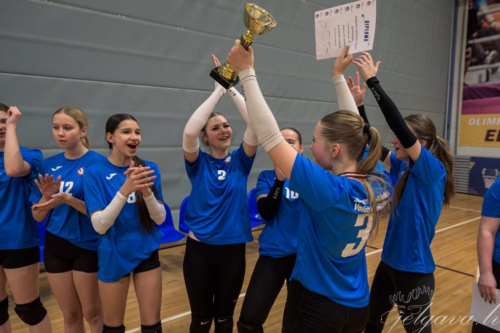 Pirmo reizi volejbols notika arī 8.–9. klašu meitenēm, un šajā grupā pieteicās trīs komandas: Jelgavas 4. vidusskola un divas Jelgavas Spīdolas Valsts ģimnāzijas komandas. Arī meitenes spēlēja līdz diviem uzvarētiem setiem. Uzvarēja Spīdolas pirmā komanda, otrajā vietā – Spīdolas otrā komanda, trešajā vietā – Jelgavas 4. vidusskola.