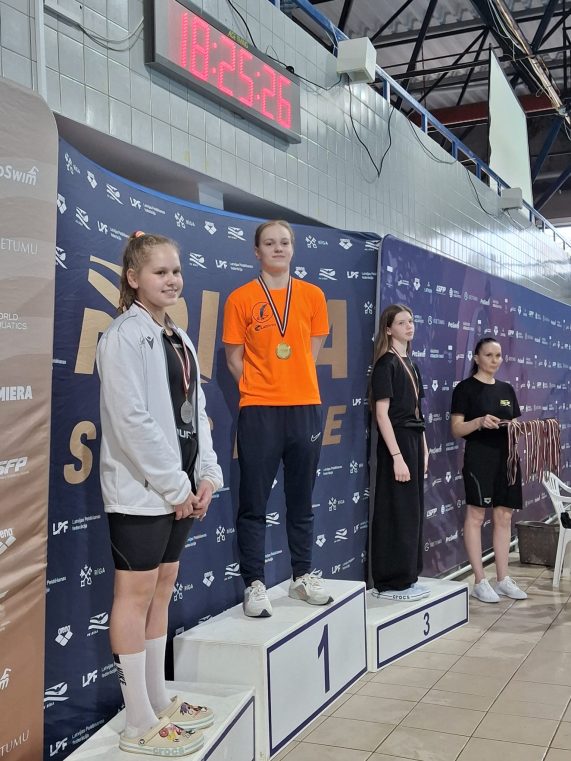 Savukārt, startējot IV vecuma grupā, Vitālija 50 metros uz muguras ar rezultātu 30,63 sekundes izcīnīja zelta medaļu, bet 50 metros brīvajā stilā ar rezultātu 28,15 sekundes – bronzu. Arī Evelīnai bronzas medaļa 50 metros uz muguras ar rezultātu 33,28 sekundes.