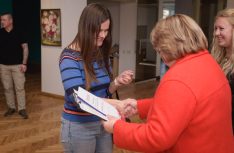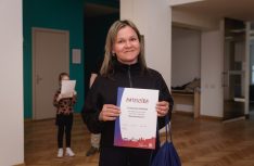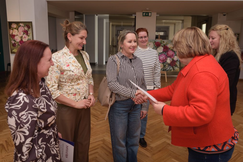 Apbalvošana notika Jelgavas kultūras nama 1. stāva galerijā, kurā aplūkojama Andas Buškevicas radošo darbu izstāde “Saskarsme”, ko papildina multimediālas projekcijas.