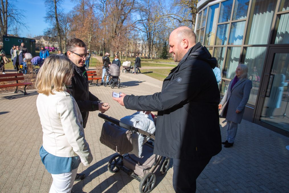Saņemt karotīti ar pilsētas simboliku Lieldienās bija aicināti 64 mazuļi un vecāki. Mazuļu vidū arī divi dvīņu pāri – divi puisīši un meitenīte un puisītis. Dvīņiem līdz ar karotīti pasniegti arī pilsētas simbola Alnīša rotaļlieta.