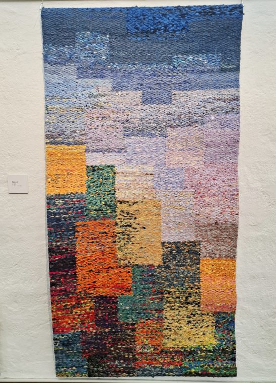 Izstādei tornī tekstilmāksliniece Mārīte Leimane izvēlējusies gan tradicionālajā gobelēna tehnikā darinātas tekstilijas, gan īpašā autortehnikā veidotus darbus, aicinot apmeklētājus palūkoties uz lietām ar jaunu skatījumu un iedvesmoties radošiem eksperimentiem. Pēdējos gados māksliniece piešķir audumam otro dzīvi, prasmīgi izmantojot dažādas auduma strēmeles un plastmasas sietus, lai radītu inovatīvus darbus. Autore teic: “Ir grūti noskatīties, ka tik daudz dažādu krāsainu audumu tiek izmests mēslainē. Ar tādu bagātīgu krāsu gammu ir jāglezno!“ To māksliniece arī veiksmīgi dara – jaunākie darbi ir gluži kā gleznas, kurās, vienu pie otras ievijot auduma strēmelītes, veidojas ainaviski motīvi. Tās varētu dēvēt par noskaņu gleznām.